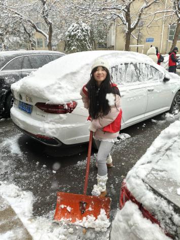 双手冻得通红,就搓一搓再接着干;额头渗出汗珠,便抹一把继续冲锋。皑皑白雪中,他们忙碌的身影来回穿梭,构成了冬日校园里最动人的画面。路过的师生纷纷驻足点赞,不少人拿出手机记录下这暖心瞬间,感叹道:“新生们太给力了,这就是济大的青春力量!”