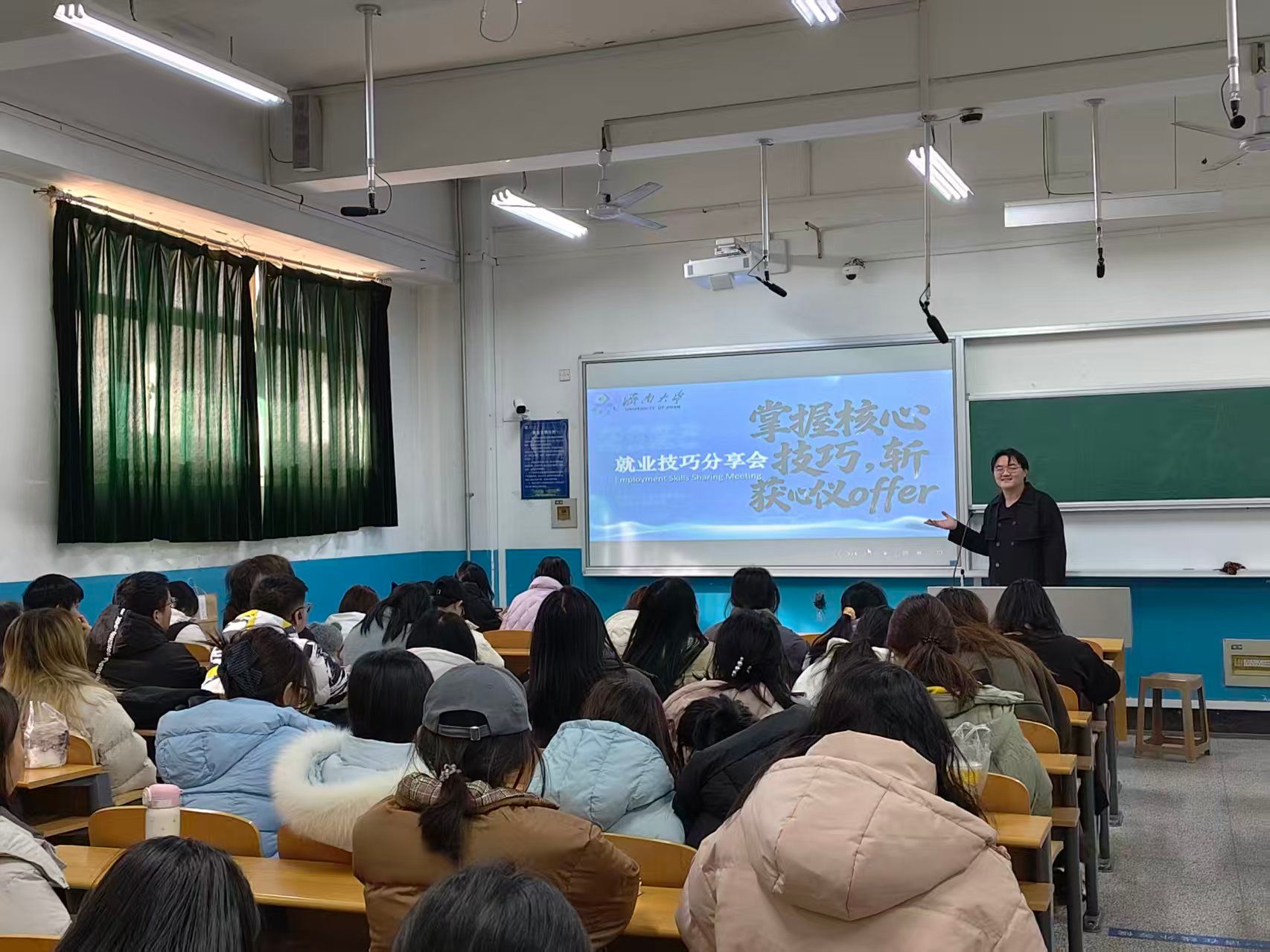为帮助学生把握就业形势,提升求职竞争力,近日,济南大学文化和旅游学院举办“新时代就业机遇与挑战”主题就业指导活动,围绕形势展望、政策解读、技巧分享与AI应用四大模块展开指导。