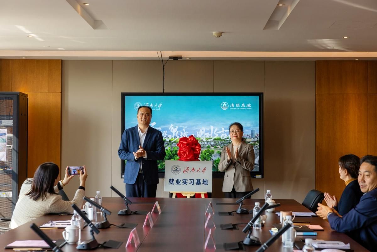 揭牌与签约仪式上,张庆国与赵琳共同为“济南大学就业实习基地”揭牌,文化和旅游学院党委副书记、副院长信苏珊与明水古城公司人力资源部总监卜一奇共同签署了《就业实习基地协议》,标志着校政企合作进入了新的阶段。