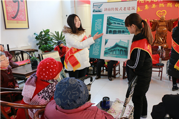 为了弘扬传统孝道文化,传递青春正能量。我院青年志愿者协会联合济南市博物馆,于12月7日下午来到舒心港湾敬老院为老人们讲解老济南的建筑、民俗知识。