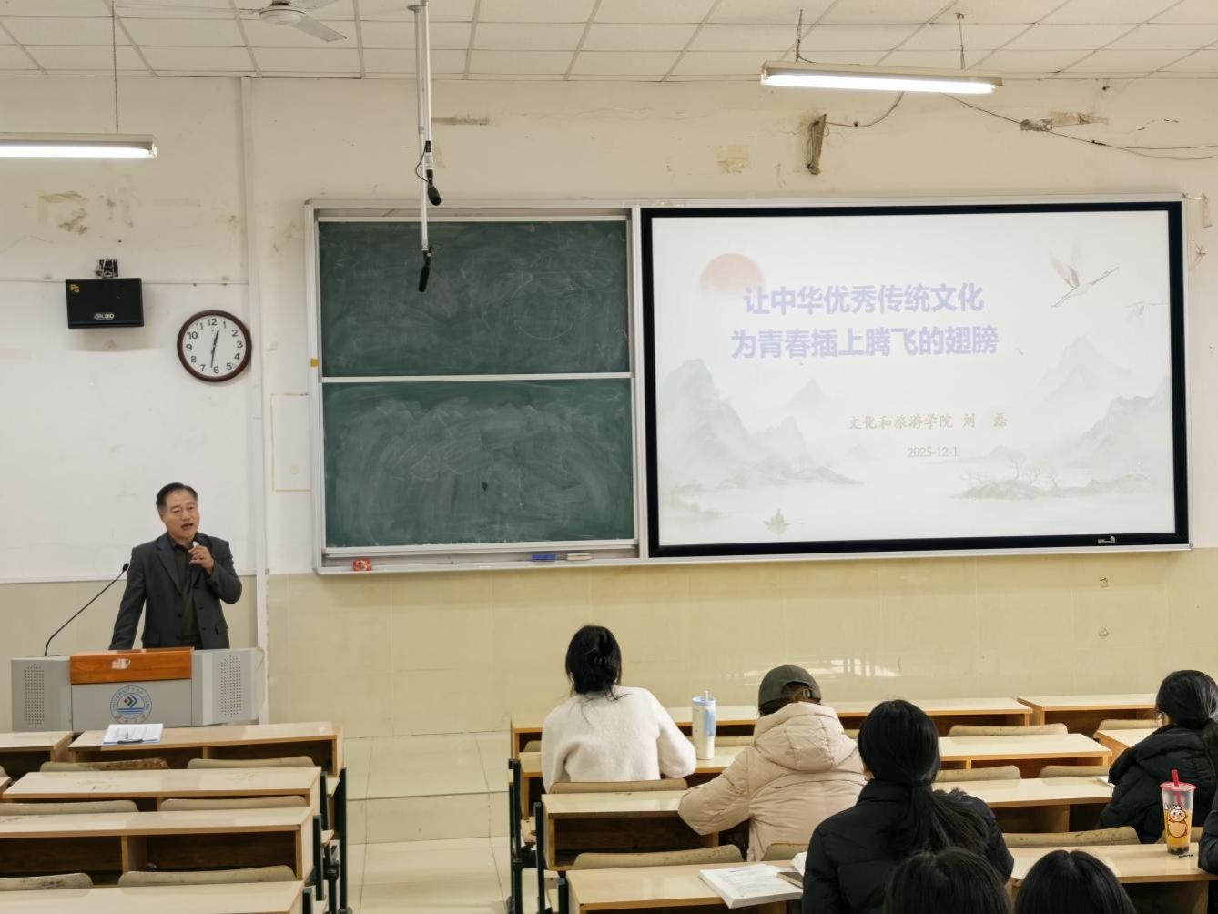 学院院长刘磊讲授了题为“让中华优秀传统文化 为青春插上腾飞的翅膀”党课。主要围绕中华优秀传统文化助力青年成长展开,阐释了传统文化与青春成长的内涵,结合党的二十届四中全会关于激发文化创新活力、建设文化强国的精神,与校园内传统文化的传承创新,提升大学生综合素质,为青年塑造健全人格、拓展思维视野、激发创新精神,为青春腾飞赋能。